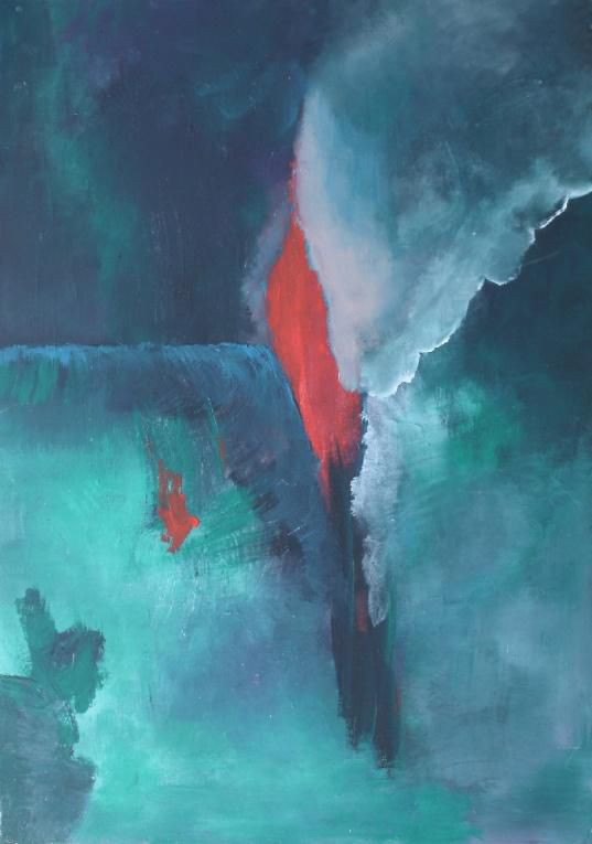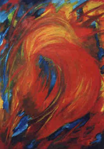 Blauer Himmel, rotes Glühen, ein wilder Tanz. Sich aufplusternd und schon verglühend. Flucht nach vorne - gebremst. Herbst. Fliehend in blauen Schuhen, mit rotblonden Haaren im Feuerkleid.