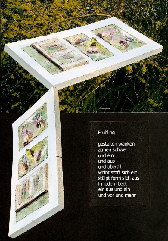 Die facettenreichen Landschaftsmodelle stehen wie Fremdkörper in der realen Landschaft. In der direkten Gegenüberstellung von Realem und Künstlichem offenbart sich der Zwiespalt zwischen Natur-und Kunstform. Die Rahmen und Leisten, mit denen die künstlichen Landschaften in ein Raster eingepasst und gleichsam kartographiert werden, verstärken jenen Eindruck noch zusätzlich. Mit dem Fotoapparat wird ein kleiner Ausschnitt der Kunstlandschaft anvisiert. Das solchermaßen fokussierte Detail erhebt sich als dreidimensionales Objekt vor der realen Landschaft (Würmtal bei Gauting), wodurch die verschiedenen Realitätsebenen gleichsam ineinander verschmelzen.
